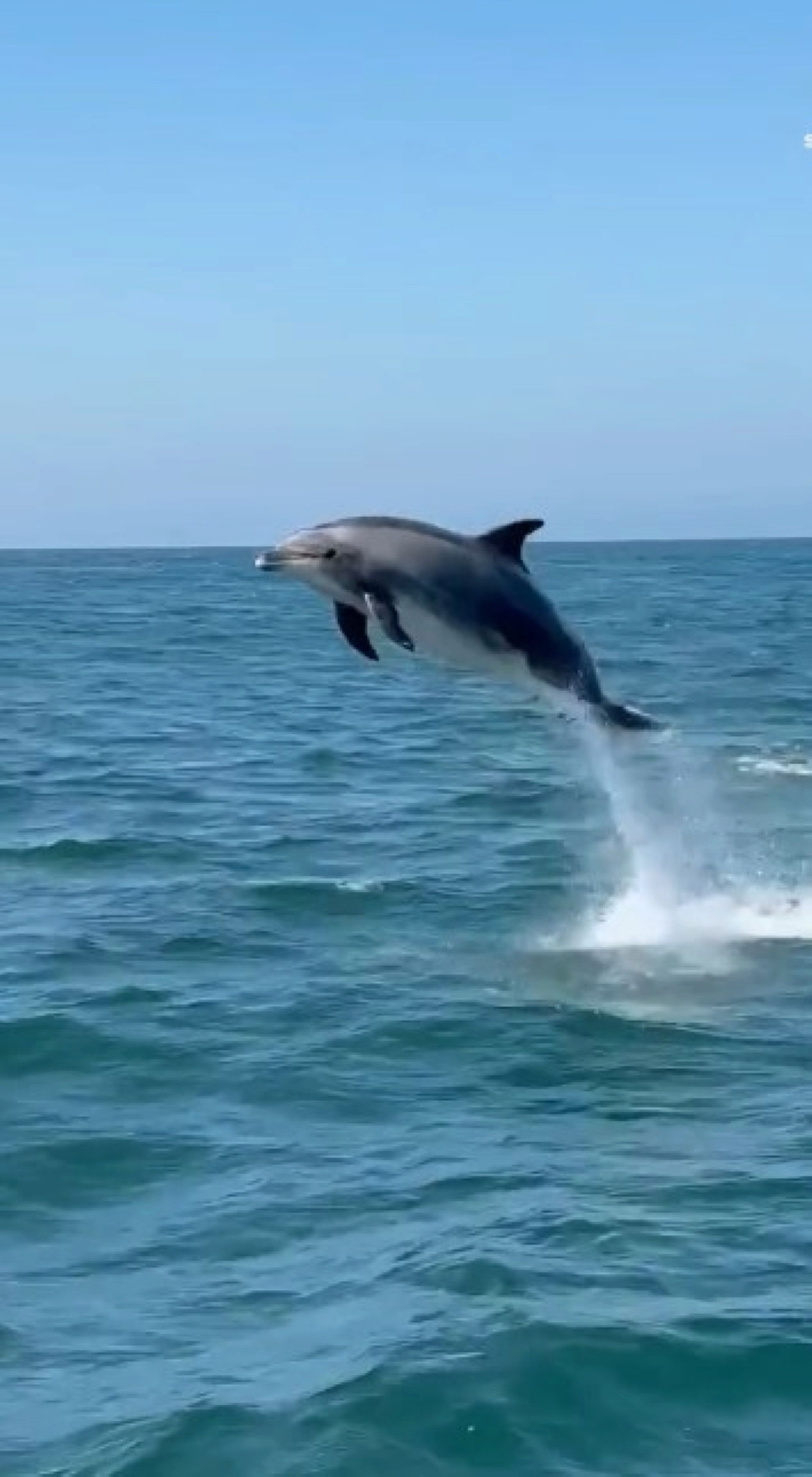 پرش هیجانانگیز دلفین نزدیك قایق گردشگران