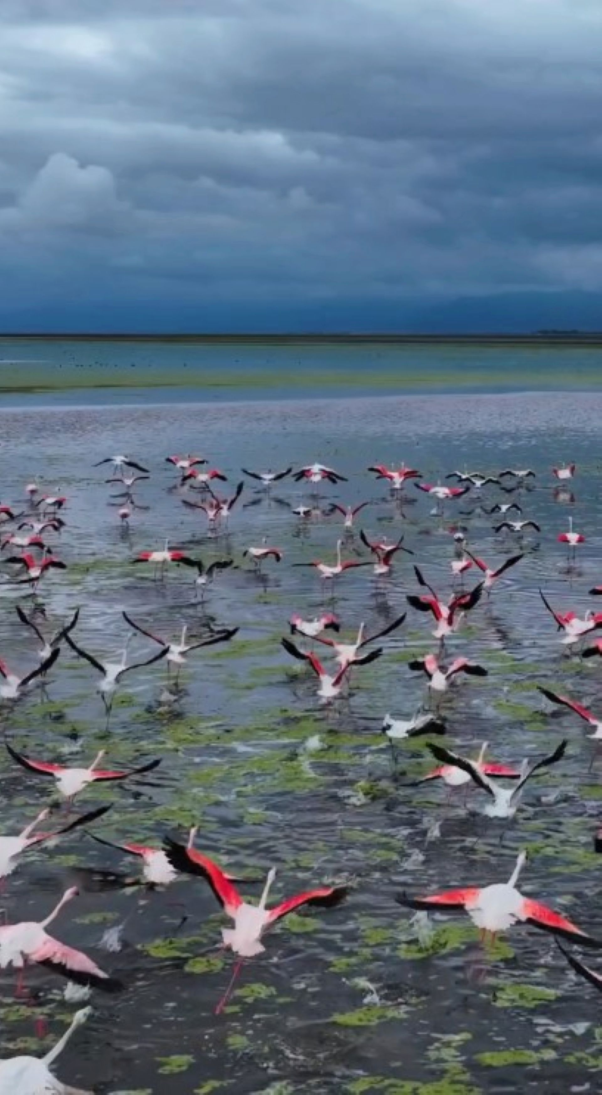 پرواز فلامینگوها بر فراز تالاب میانكاله
